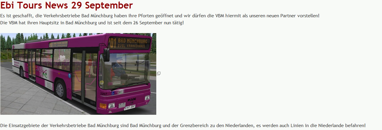 Seit heute begrüßen wir in unserem Unternehmen die Abteilung "Ebi Tours News", die Sie und unsere Fahrer dauerhaft auf dem neuesten Stand halten wird!